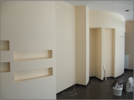 Wohnzimmer-Neugestaltung und Vollwärmeschutz.