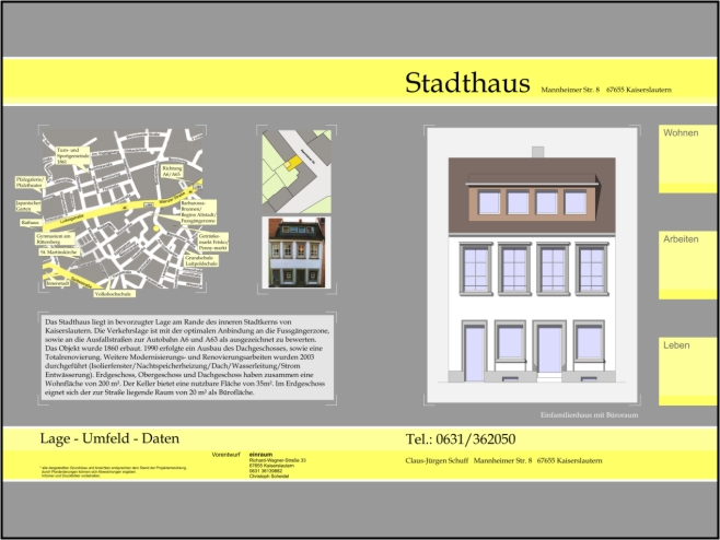 Verkehrswertermittlung, Umplanung und Portfolio eines Stadthauses in der Mannheimerstraße Kaiserslautern. Für Kaufinteressenten - kontaktieren Sie uns einfach.