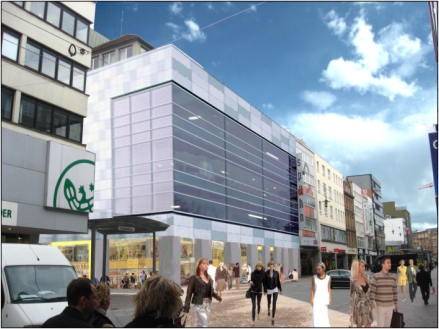 Fassadenstudie für das ehemalige Sinn Leffers Gebäude in der Bahnhofstraße 81 Saarbrücken.
